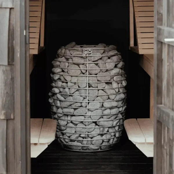 he Wi-Fi compatible HUUM HIVE Mini 9 is a floor-mounted 9-kilowatt electric sauna heater.